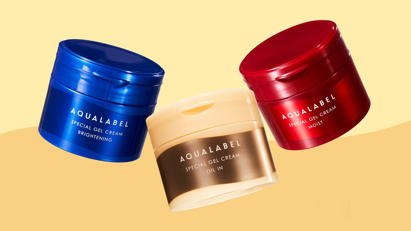 AQUQLABEL Special Gel Cream is a best-selling all-in-one gel that acts as a toner, emulsion, cream, serum and face mask. It’s available with 3 types with different skin care effects. The Brightening type (blue) is formulated with skin brightening ingredients and vitamin E, which help to suppress melatonin production and prevent freckles and spots. The Moist type (red) is enriched with a high concentration of collagen that provide deep penetration and long-lasting moisture. The Oil In type contains golden oil capsules with retinol palmitate and three types of oil which provides moisture and firmness to the skin.
