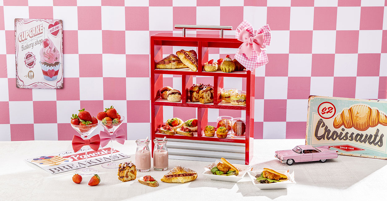 Hilton Tokyo is renowned for its bread-focused afternoon tea. The “Strawberry Petit Boulangerie” showcases more than ten varieties of breads and sweets, all presented within an “American ’50s” retro theme. Standout offerings include a playful strawberry beef burger, complemented by an array of strawberry-infused artisan breads.