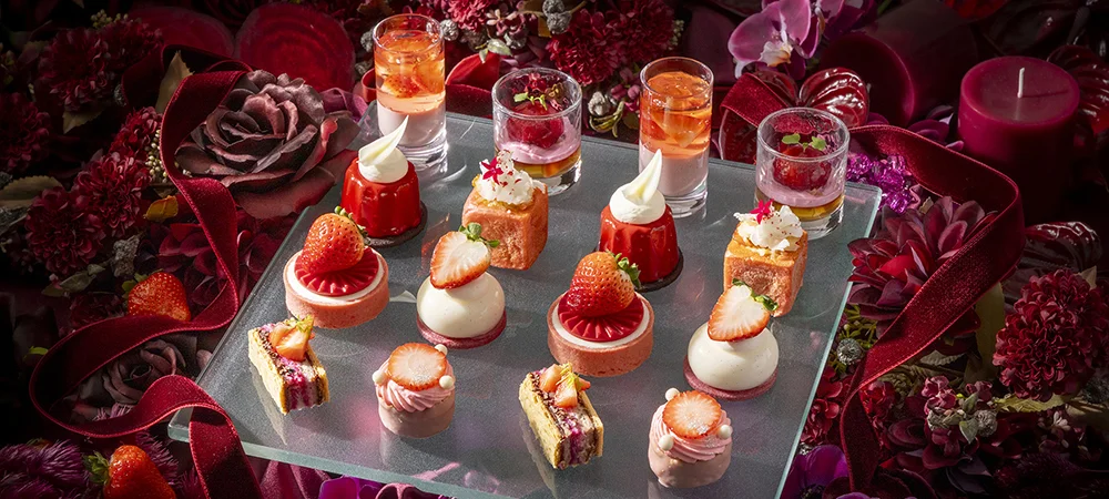 Offering panoramic views of Tokyo Bay, the “Strawberry Luxe Afternoon Tea” presents a refined selection of sweets and savories that highlight the strawberry’s versatility. Artistically crafted confections are served on the venue’s signature glass plates, enhancing the visual elegance of the experience.